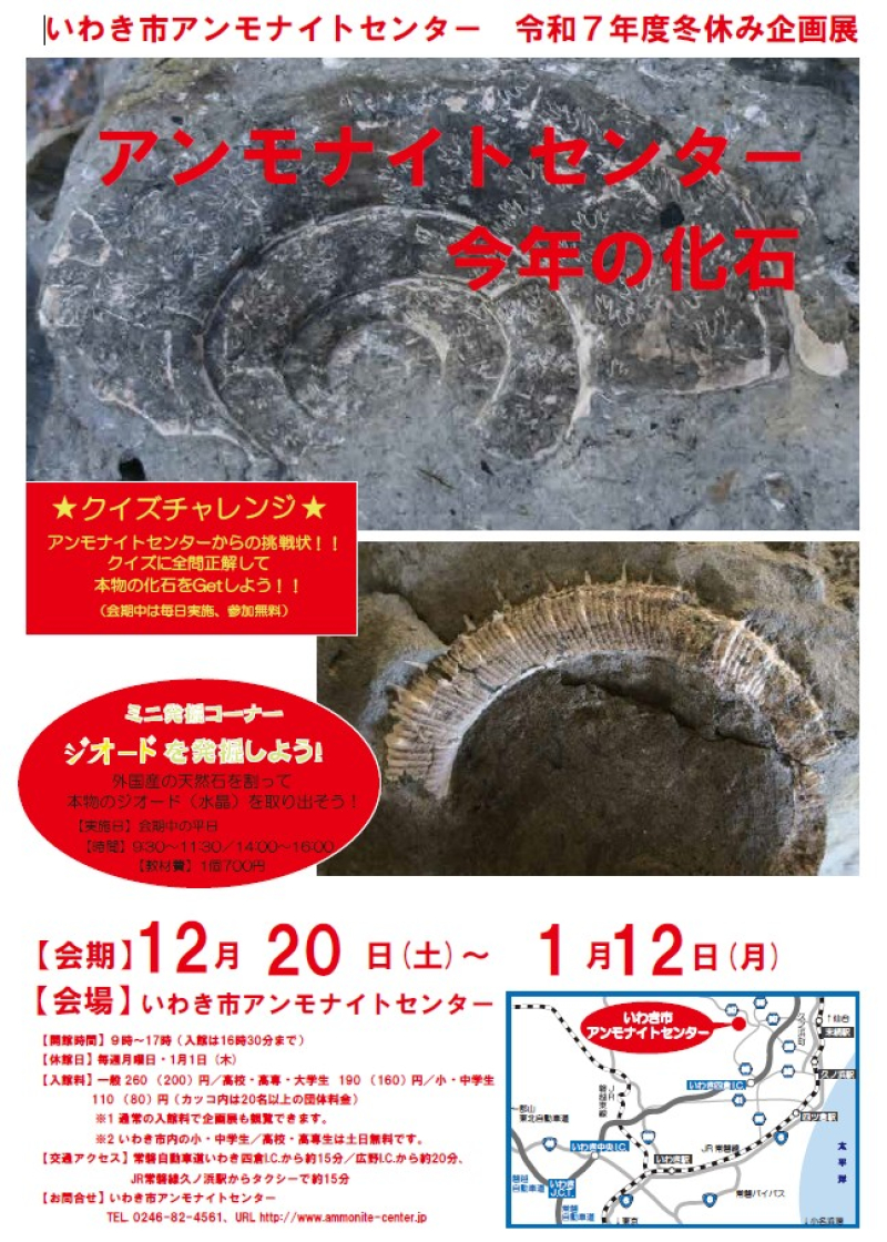 いわき市アンモナイトセンター冬の企画展「アンモナイトセンター 今年の化石」